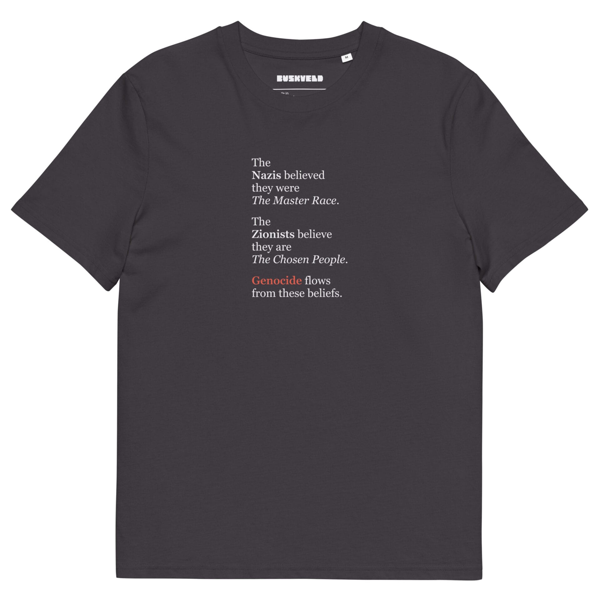 Stand for human dignity in this premium organic cotton tee, featuring a message rejecting extremism and violence. Crafted from eco-friendly 100% organic cotton with a comfortable fit, it lets you advocate for peace while wearing the softest ‘fabric of our lives’.