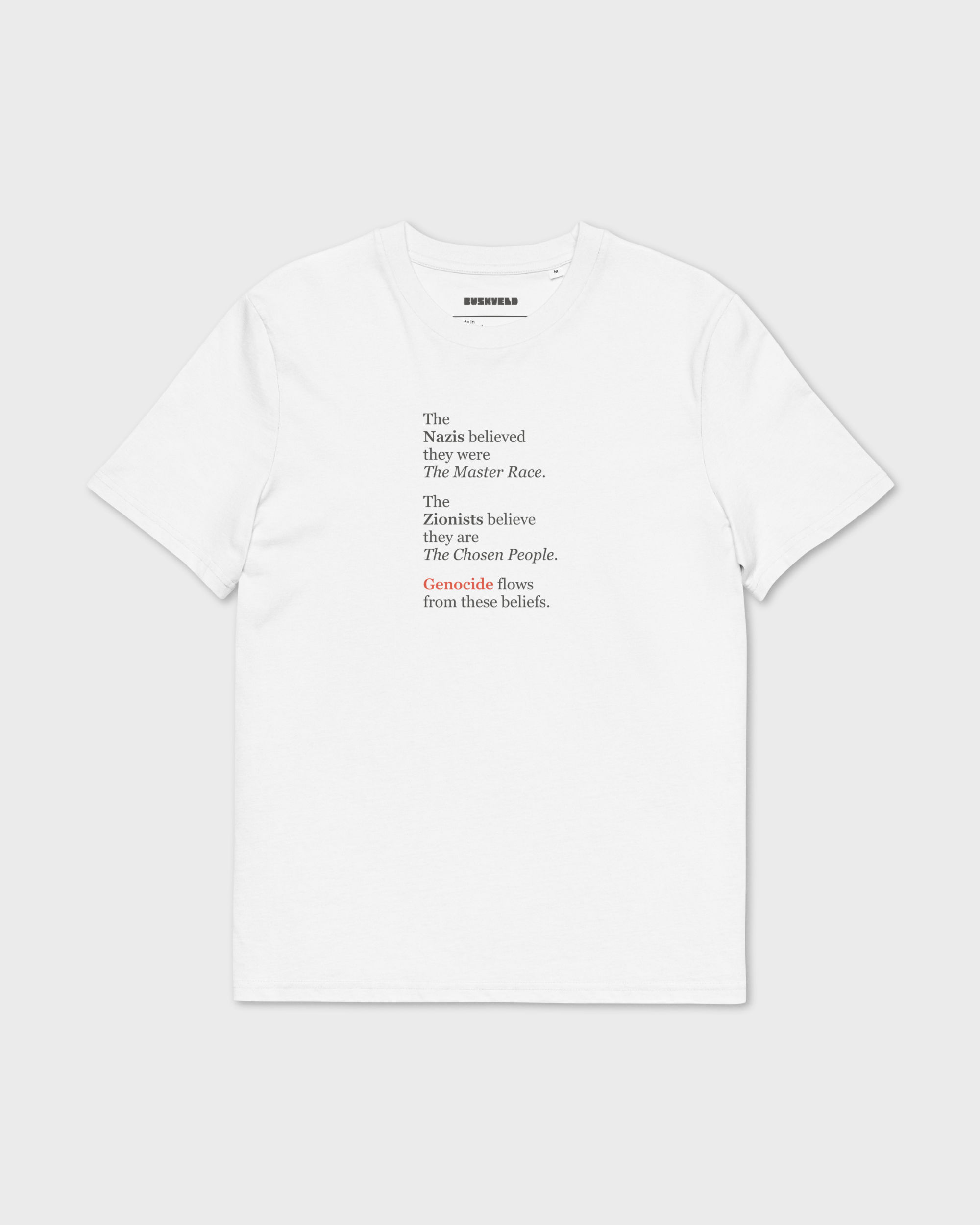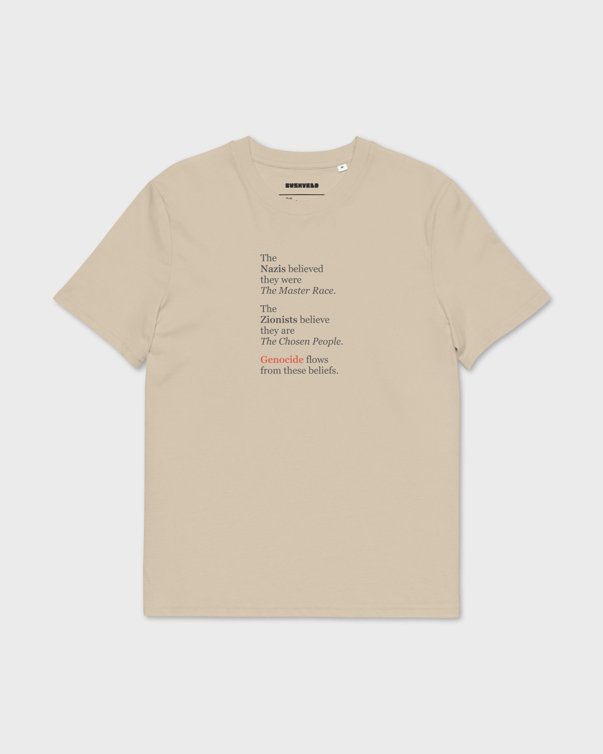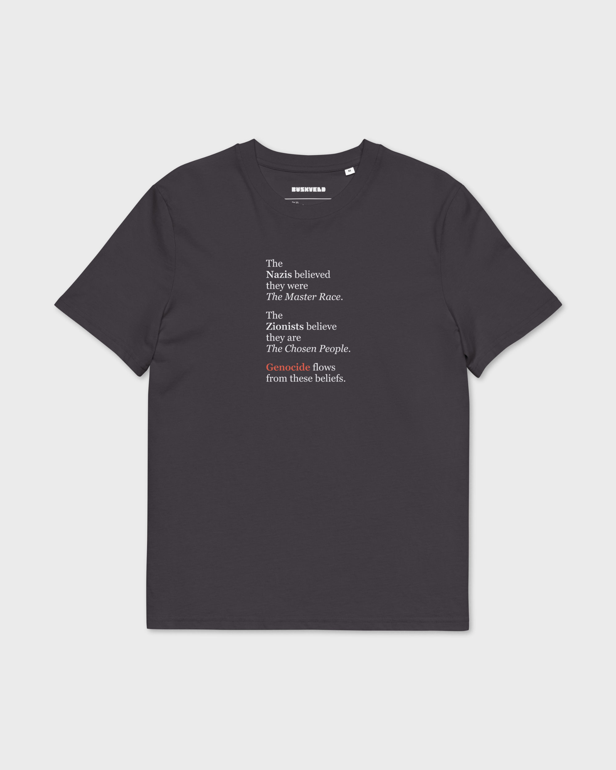 Stand for human dignity in this premium organic cotton tee, featuring a message rejecting extremism and violence. Crafted from eco-friendly 100% organic cotton with a comfortable fit, it lets you advocate for peace while wearing the softest ‘fabric of our lives’.