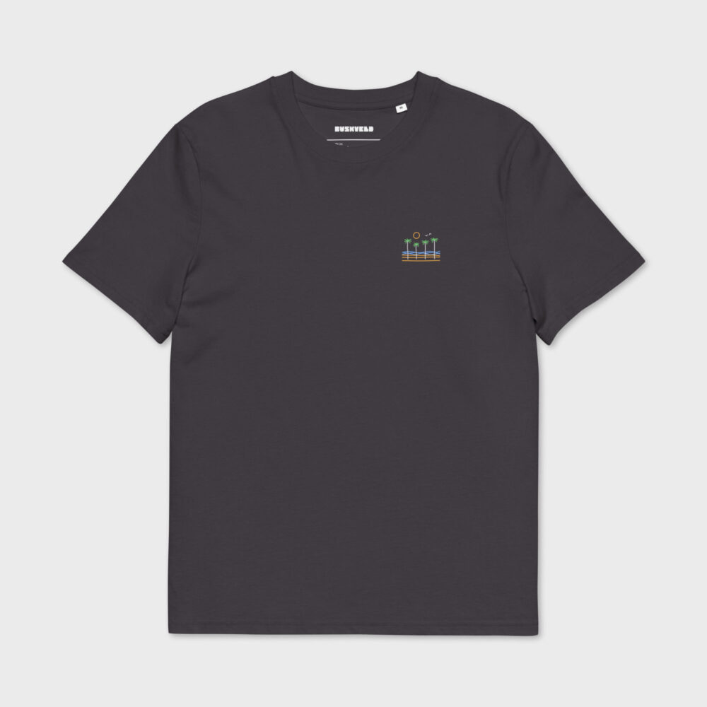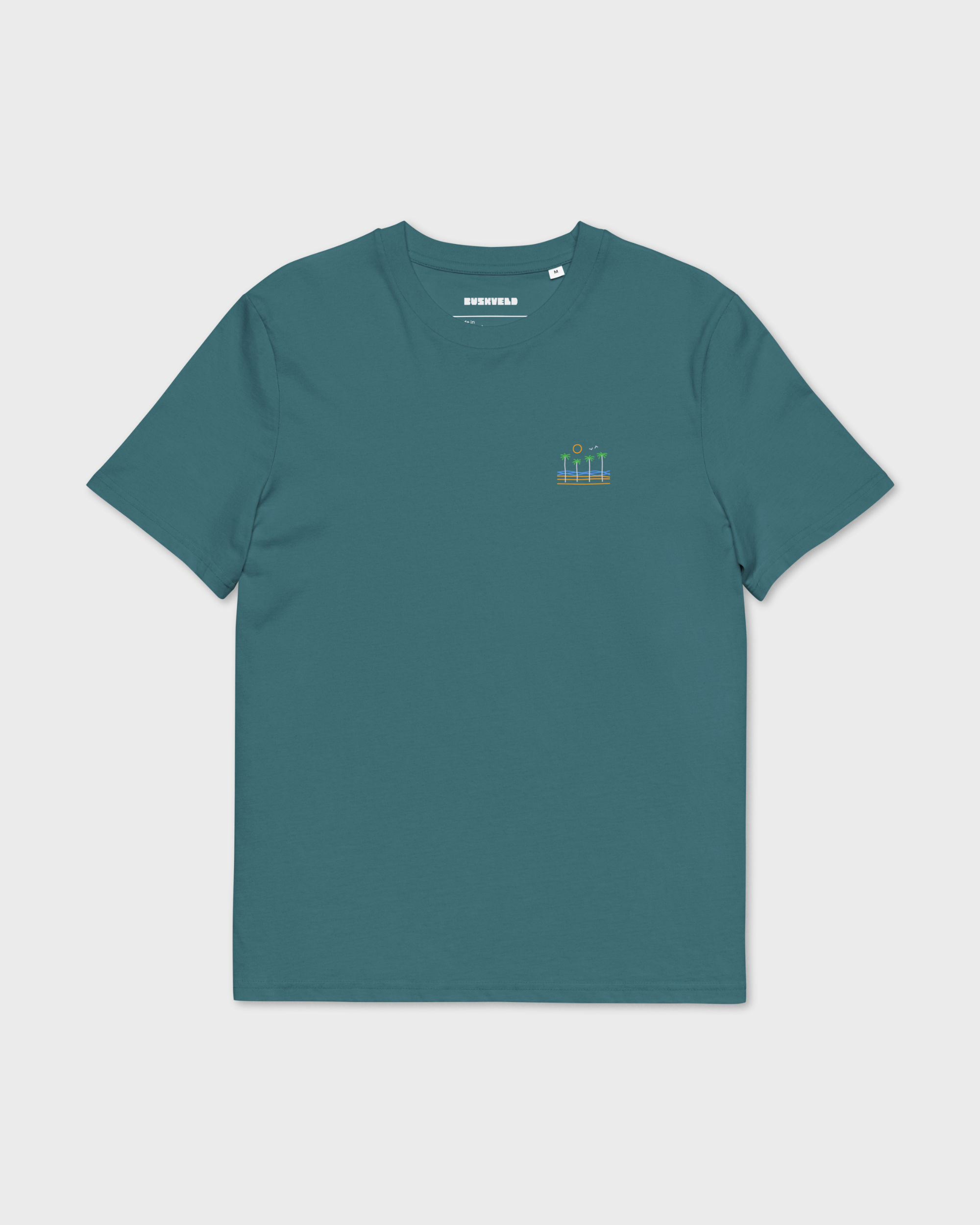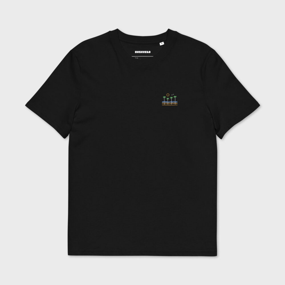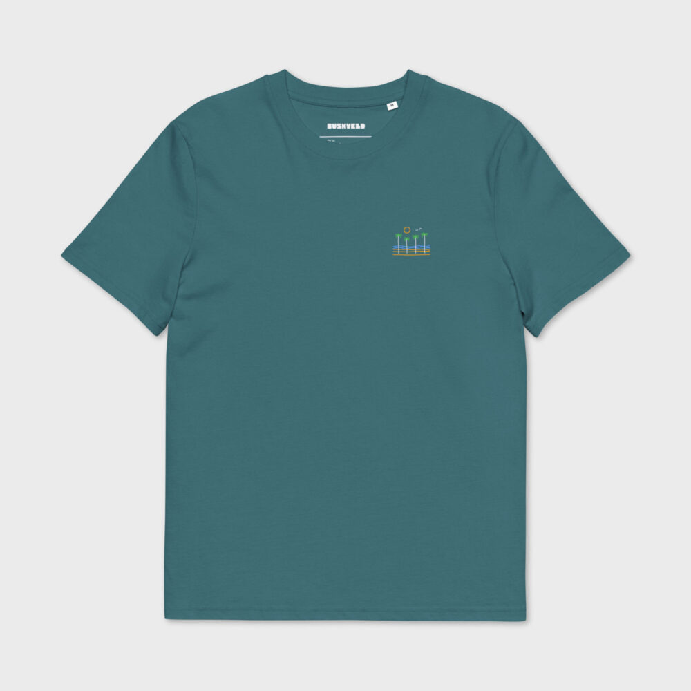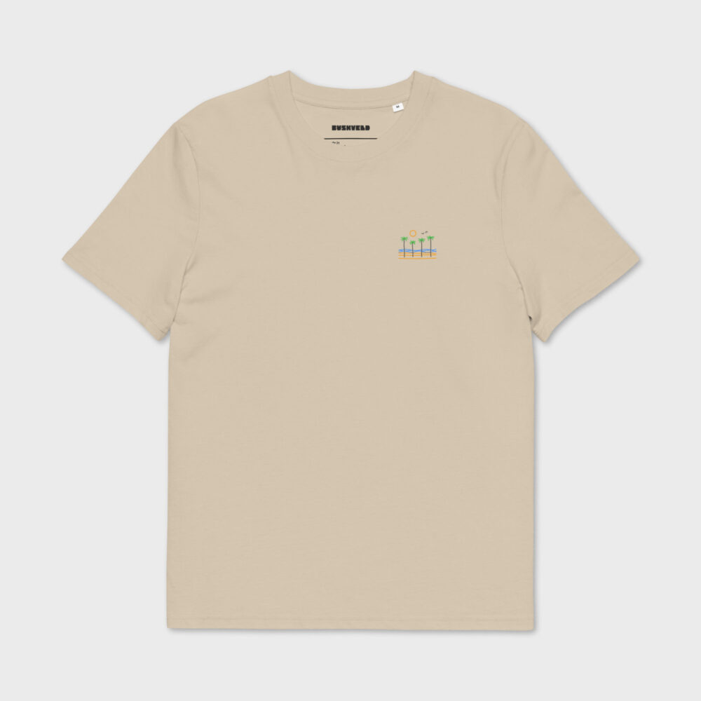 Embrace summer vibes with this essential eco-friendly tee. Made from incredibly soft 100% organic cotton, it features a minimalist graphic of palm trees, waves, and a sun for effortless tropical beach vibes.